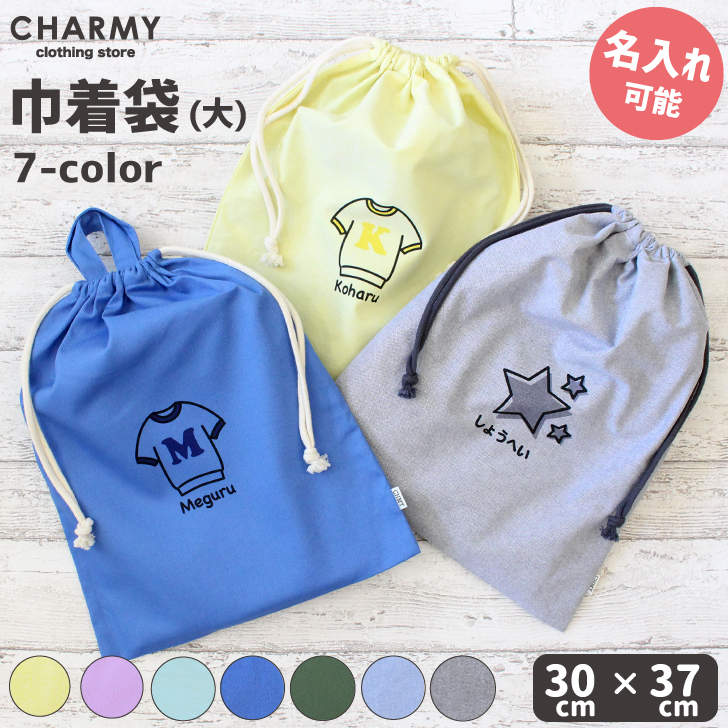 お名前プリント 巾着袋 (大) イニシャル 名入れ 子供用 男の子 女の子 体操服入れ 上履き入れ 巾着バッグ 小物入れ 入学準備 プレゼント
