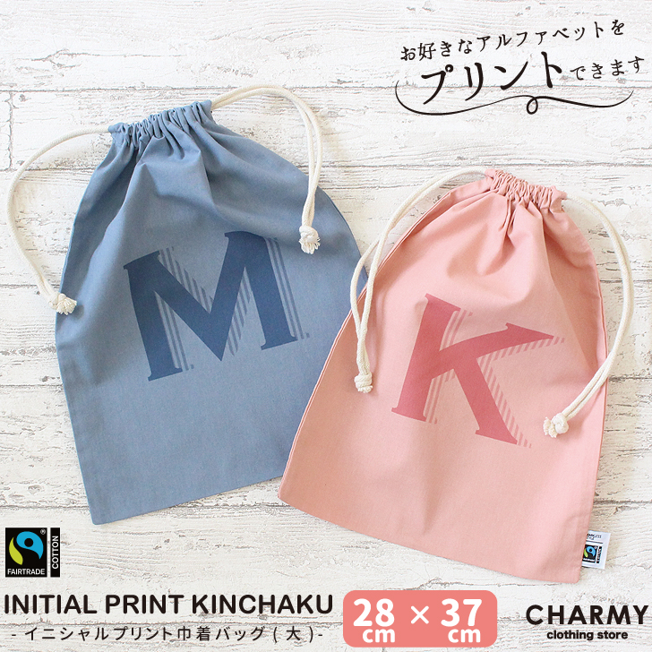 アルファベット プリント 巾着バッグ イニシャル 名入れ 子供用 大人用 体操服入れ 上履き入れ 旅行バッグ 小物入れ プレゼント 誕生日 ギフト