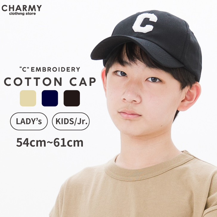 【クリアランス】キッズ ジュニア レディース Cアップリケコットンキャップ 帽子 ハット シンプル 刺繍 ワンポイント 綿