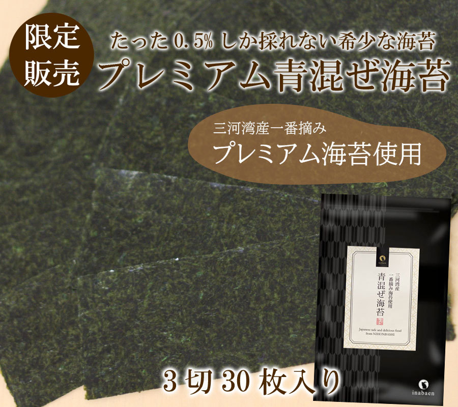 海苔 青混ぜ海苔 3切30枚 三河湾産 一番摘み メール便 送料無料 茶匠庵 焼のり ご飯のお供 おにぎり 国産 葉酸 タウリン 混ぜ海苔 青まざり こんのり 錦海苔