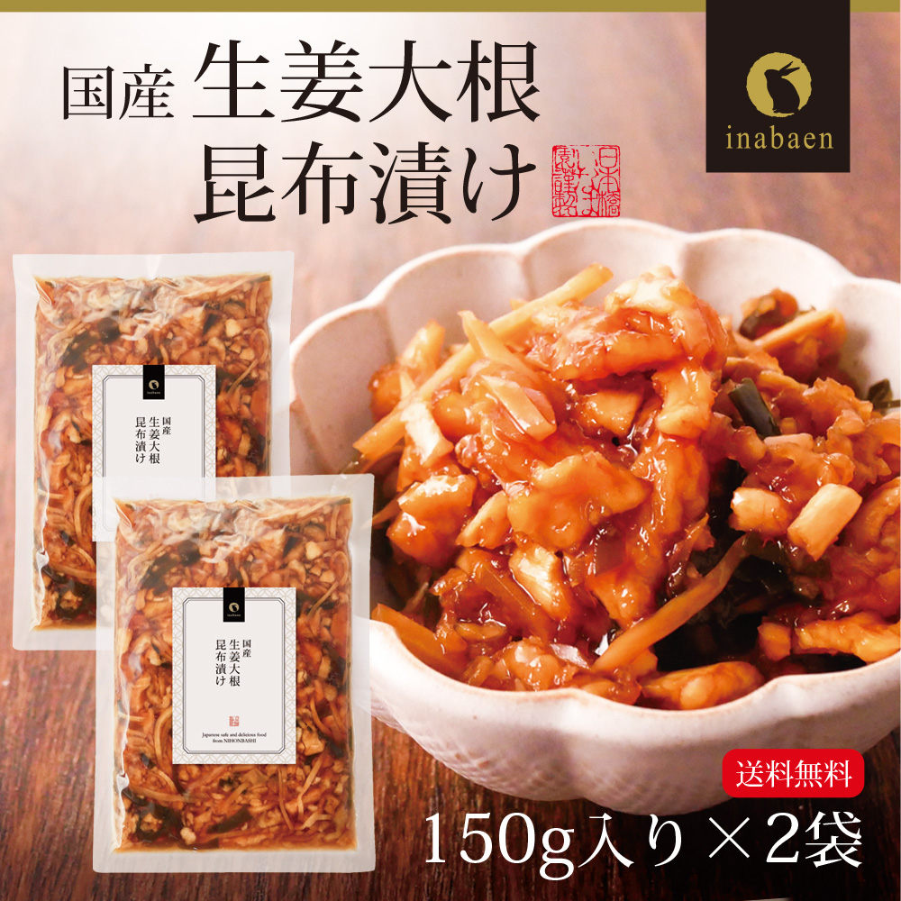 漬物 国産 生姜大根昆布漬け 150g 2袋セット メール便 送料無料 お漬物 ご飯のおとも 弁当 お惣菜 時短 おかず 一人暮らし 食品 非常食