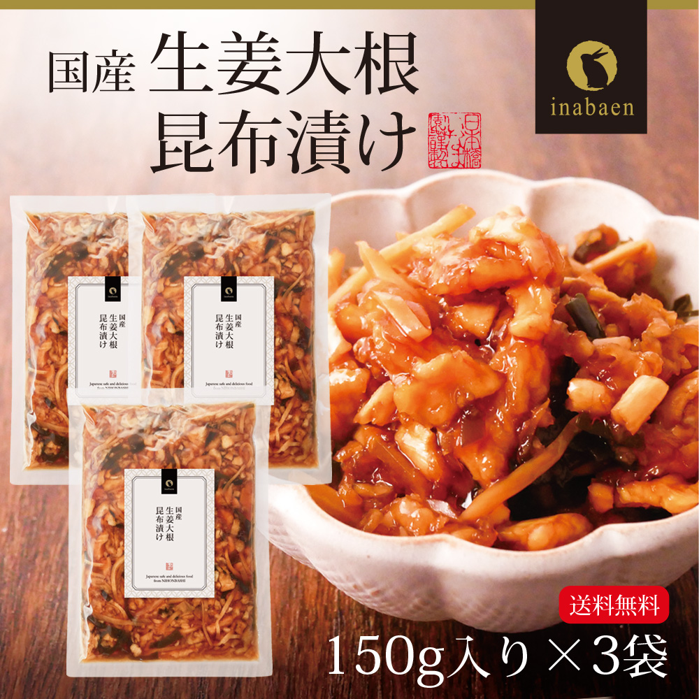 漬物 国産 生姜大根昆布漬け 150g 3袋セット メール便 送料無料 お漬物 ご飯のおとも 弁当 お惣菜 時短 おかず 一人暮らし 食品 非常食