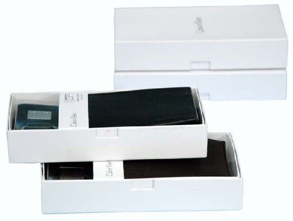 Calvin Kleinロゴの型押し(エンボス)あり。ギフトボックス入り。