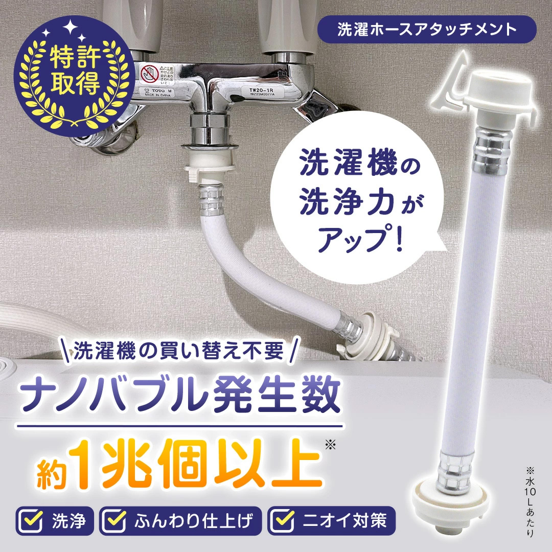 ナノバブル 洗濯機 ホース 【 洗濯革命 ナノバブール 】 洗濯ホースアタッチメント 全自動洗濯機用 洗浄効果 消臭効果 部屋干し Yahoo!ランキング1位獲得 爆買