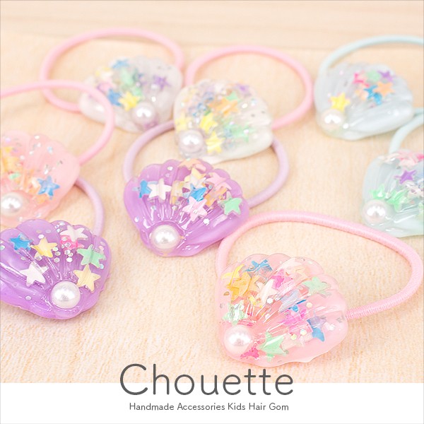 キラキラ星入りシェルのヘアゴム 2個 ヘアアクセサリー キッズ 子供 レディース 可愛い 大人 パステルポイント消化 h-786