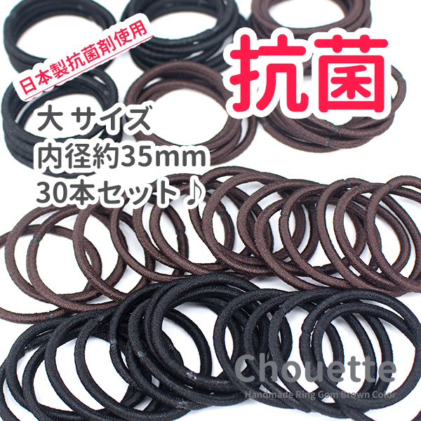 ヘアゴム 値下げ 日本製 抗菌リングゴム 30本セット 大 ブラック ブラウン レディース 大人 シンプル アクセサリー ポイント消化 M-12-30
