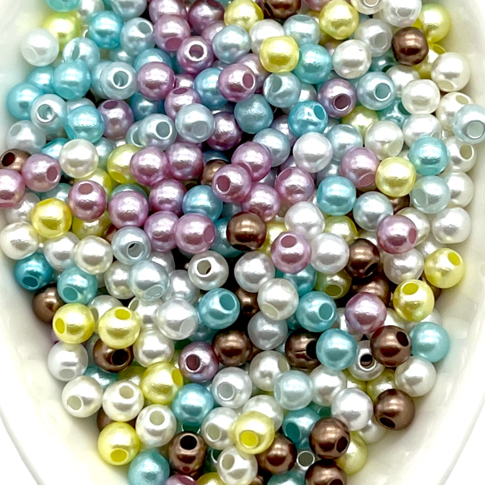 綺麗なパール調の穴あり4mmのビーズです。ネックレスや、ブレスレット、ヘアゴムなどにつけたり、インテリアなどにご使用できると思います。