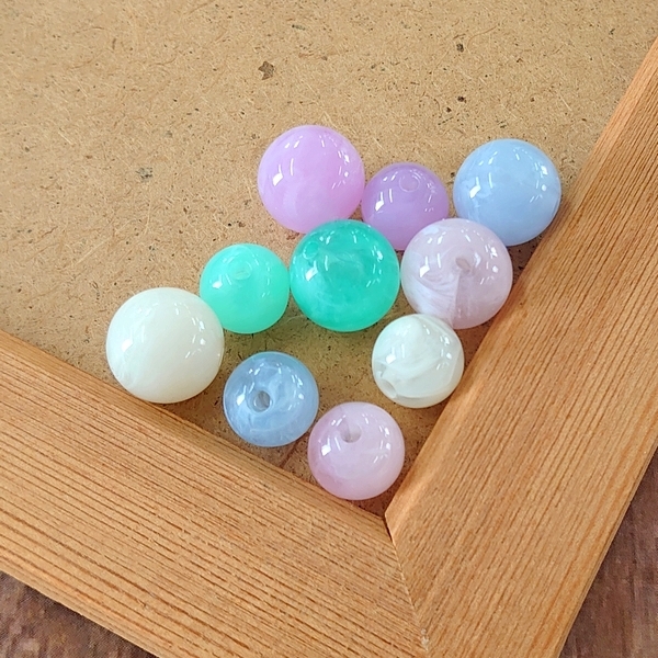 ハンドメイド素材 材料 アクリルビーズ 穴あり マーブル柄 2サイズ丸玉 pt-238-B
