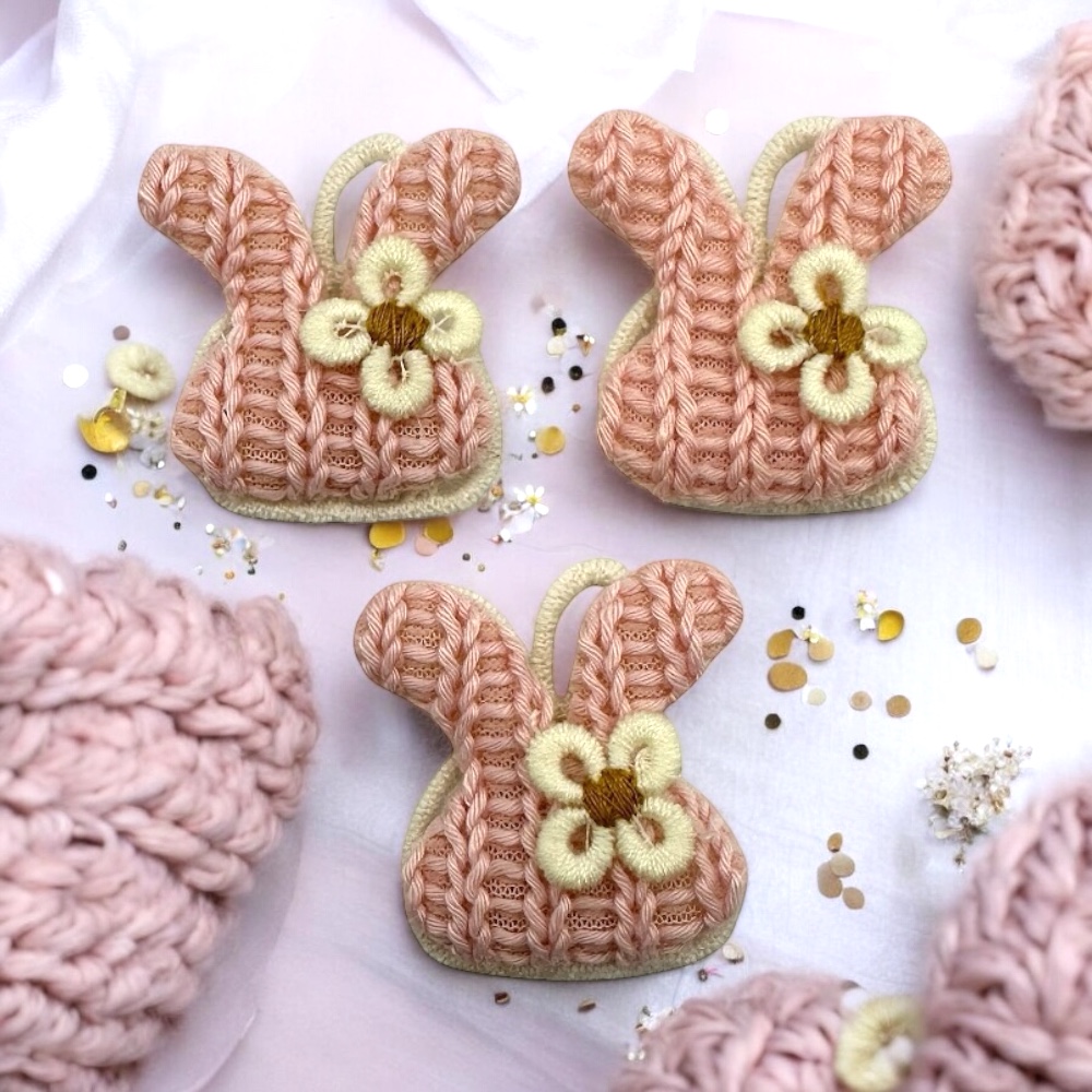 ウサギ 刺繍クッションパーツ 3個セット フェルト 立体 花飾り バニー 手芸 ハンドメイド材料 アクセサリーパーツ pt-2971