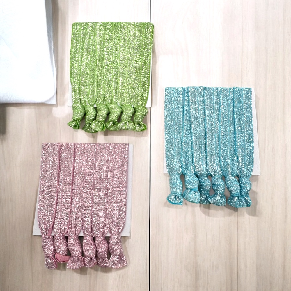 ラメ入りヘアタイ リボンゴム 6本セット ハンドメイド素材 ヘアアクセサリー 髪留め カラフル 結び目付き ブレスレット 3色 pt-3053