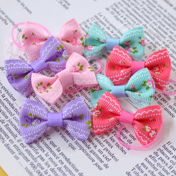 ローズ柄リボンの絡まないゴム 4個(ミックス) ヘアアクセサリー キッズ 子供 レディース 可愛い 大人 水玉 ポイント消化 t-196