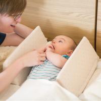 ベッドインベッド エイドは三角形クッションがベビーとの境界を作り、安心・安全な添い寝をサポートします。