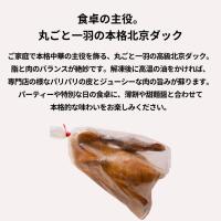 ご家庭で本格中華の主役を飾る、丸ごと一羽の高級北京ダック。脂と肉のバランスが絶妙です。解凍後に高温の油をかければ、専門店の様なパリパリの皮とジューシーな肉の旨みが蘇ります。パーティーや特別な日の食卓に、薄餅や甜麺醤と合わせて本格的な味わいをお楽しみください。