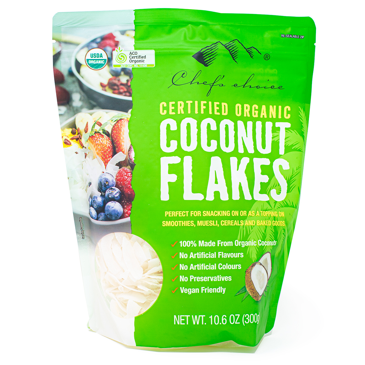シェフズチョイス オーガニック ココナッツフレーク チップス 300g×2袋 ここなっつふれーく ドライココナッツ 乾燥ココナッツ ココナッツチップス [41F-2]