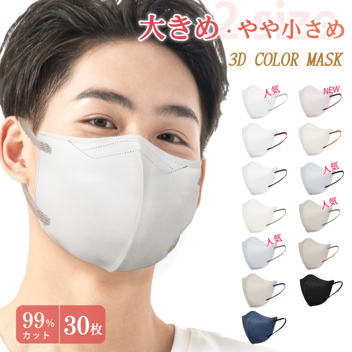 【大好評】マスク 不織布 立体 大きめ/小さめ 立体 マスク バイカラー 大きいサイズ 3Dマスク メンズ 女性用 使い捨て 耳が痛くならない 30枚 飛沫防止 花粉対策