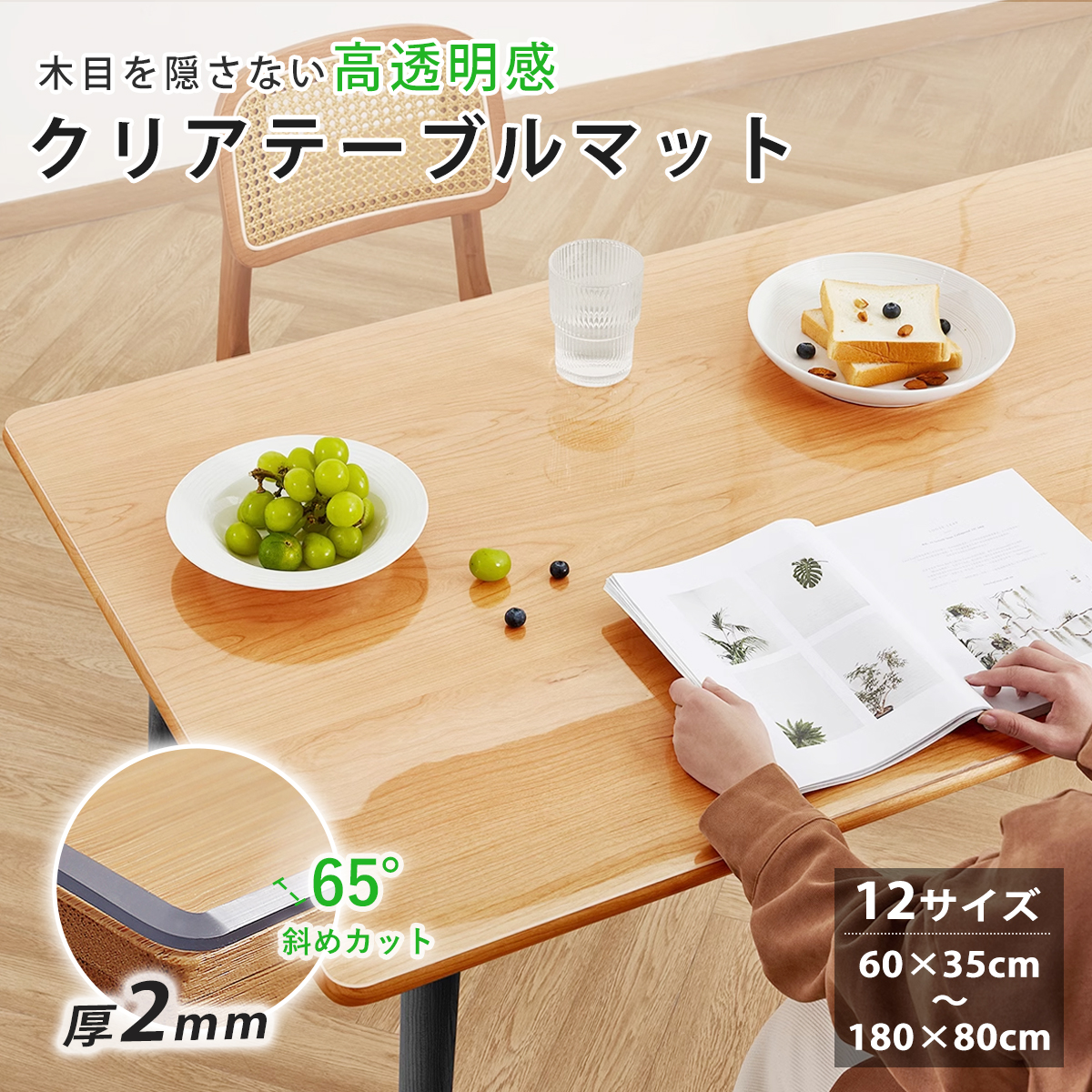 高透明度!テーブルマット 透明 デスクマット クリア テーブルクロス 2mm厚 撥水 PVC ビニール 耐熱 大判 デスクシート 学習机 子供 オフィス 食卓 床 チェア