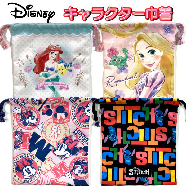 巾着 ディズニー プリンセス ミニーマウス アリエル アナと雪の女王 ラプンツェル スティッチ コップ袋 人気 入園入学