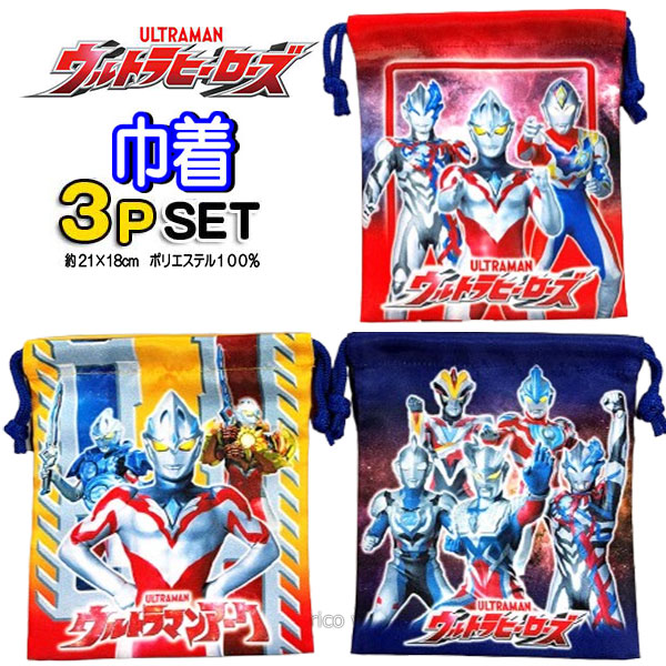 巾着 3枚セット ウルトラマン 894876 リアル ウルトラ ヒーローズ 怪獣 給食袋
