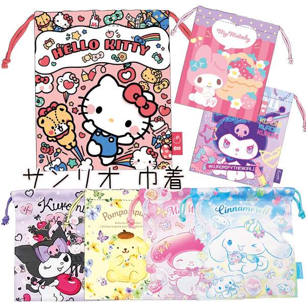巾着 Sサイズ サンリオ キティ マイメロ クロミ ポムポムプリン シナモロール 女の子 給食袋 巾着袋 【k1335】