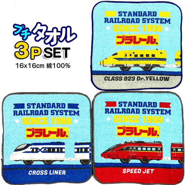 ミニタオル プラレール 3枚セット 064473 JR 鉄道 電車 汽車 プチタオル 3枚組 新幹線 ドクターイエロー プラレールタオル