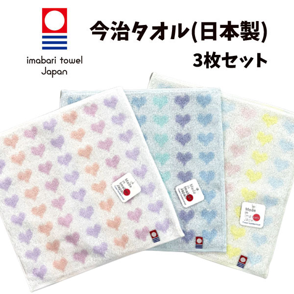 今治タオル 3枚組 ミニタオル ハート柄 25cm 母の日 ハンカチ セール かわいい 大人 父の日 母の日 敬老の日 良質 ギフト