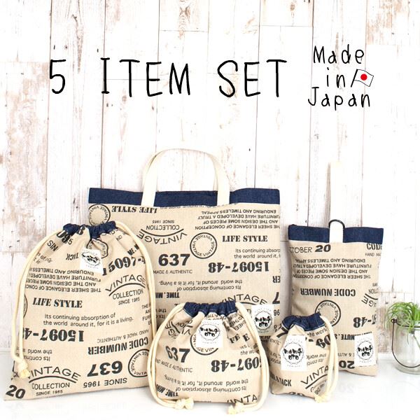 ヴィンテージバニラ×インディゴブルー 5点セット日本製《入園・入学》 rack