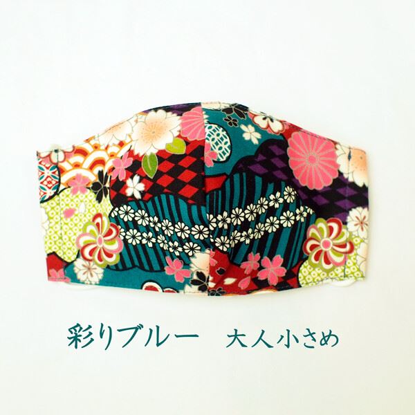 立体マスク《学生・女性サイズ》 和柄 彩りブルー (1枚入り) 日本製 マスク 大人用 小さめ 女性用 布マスク 洗える 大人 子供用 rack