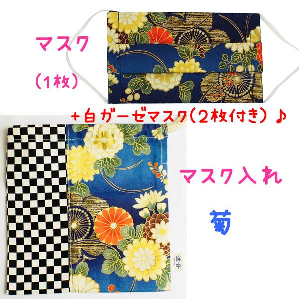 《白ガーゼマスク(2枚) 付き!!》マスク入れ&マスク 和柄 菊☆大人ふつうサイズ☆日本製 rack