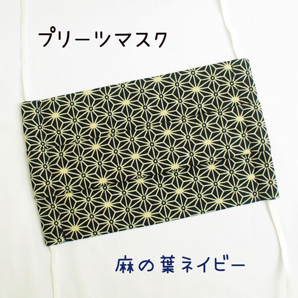 【プリーツガーゼマスク】麻の葉ネイビー 大人用 ふつうサイズ 日本製 ガーゼ マスク ガーゼマスク 布製 大人 おとな rack