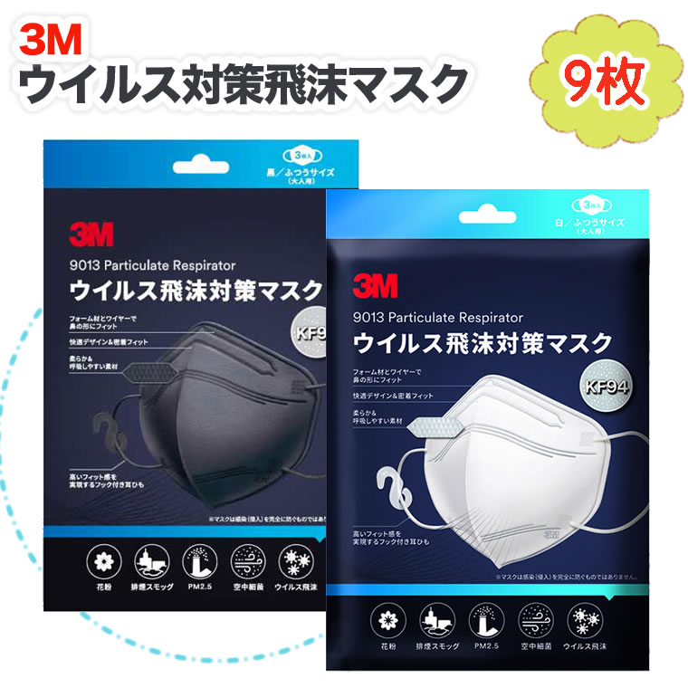3M スリーエム 高性能 マスク 9枚 ウイルス対策飛沫マスク ふつうサイズ 大人用 KF94W3 男性 女性 KF94 白 黒 オーバーヘッド