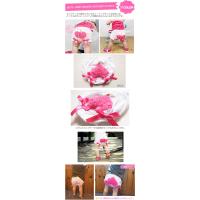 足まわりはレースになっていて、とってもかわいいリボンが飾ります。現在製造分はカップケーキのデザイン(お花のクシュクシュの配置)は△型です。ライトピンクの画像を参照してください。