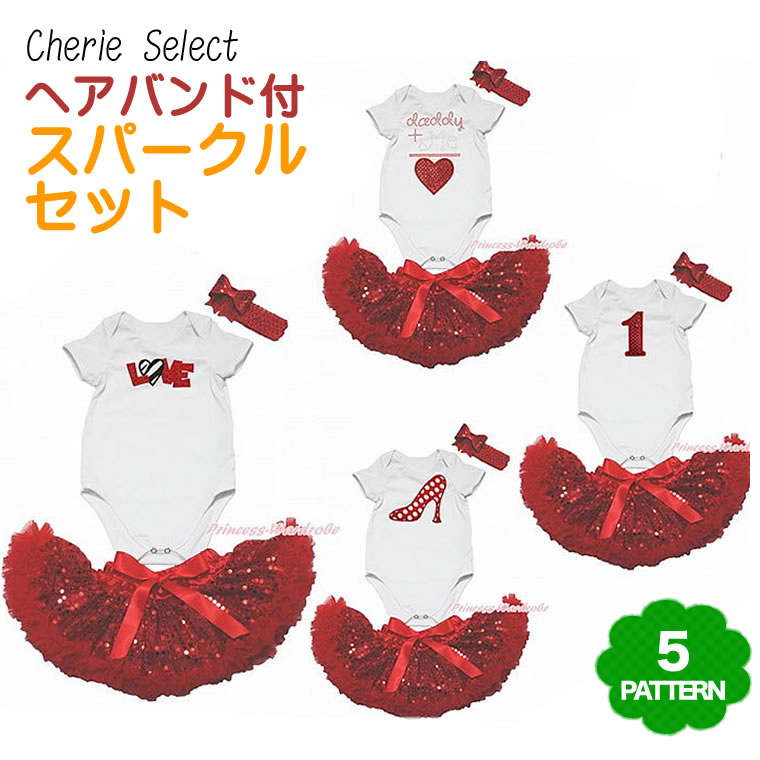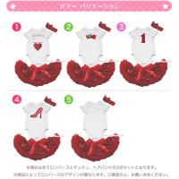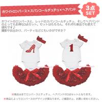 お得な3点セット! ホワイトロンパースとレッドスパンコールチュチュとヘアバンドのセット♪アップリケのデザインの中には、大好きなパパへのメッセージが付いたタイプもあってとってもキュート。ヘアバンドとセットでとってもお得です。