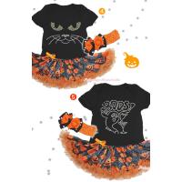 【かぼちゃ柄チュチュのハロウィンロンパースチュチュセット】イベント テーマパーク ハロウィンに! ベビーロンパース 女の子 カボチャ お化け コスプレ ハロ…