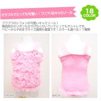 サイズ展開が豊富な、超キュートなベビーとキッズ用のフワフワフリルのキャミソール(タンクトップ)♪ボリュームたっぷりなふわふわがとってもキュートです。肩紐部分のリボンとラインストーンもとってもかわいらしいです!ダンスイベントやハロウィンパーティー、発表会、誕生日のイベント時にも!チュチュやブルマ、髪飾りと合わせると更にカワイイです!お洗濯はネットに入れてデリケート洗いをお願いします。