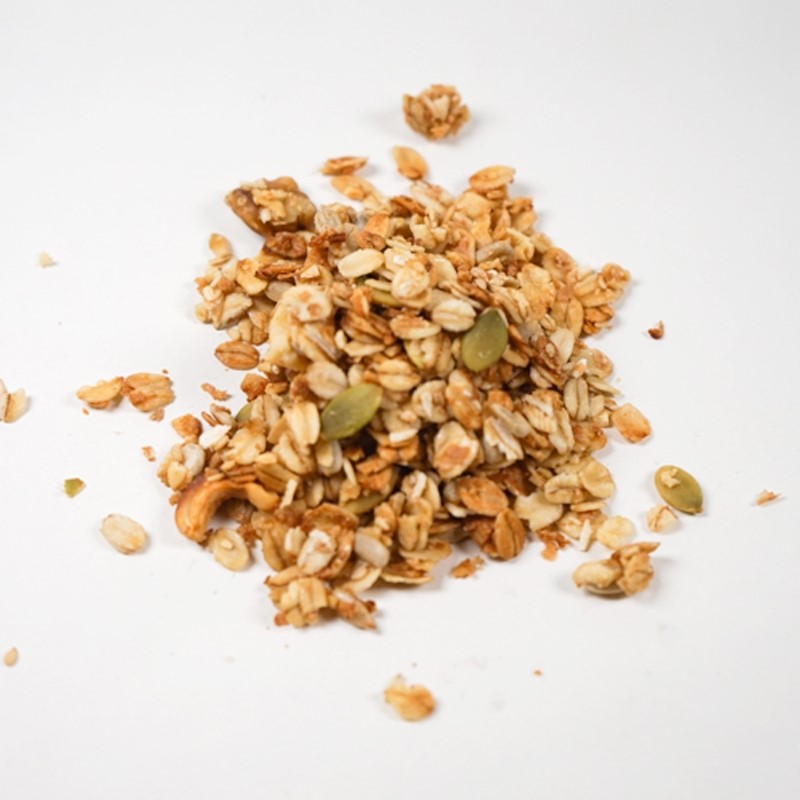 原材料オーツ麦*, はちみつ*, ひまわり油*, ひまわり種*, ごま*, カボチャの種*, ココナッツ*, カシューナッツ*, くるみ*, 小麦ふすま*, バニラ*, 食塩