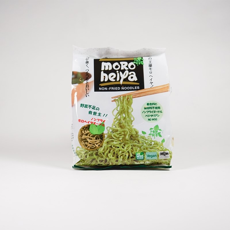 原材料小麦粉, でんぷん(タピオカでんぷん), モロヘイヤパウダー, 食塩, かんすい (天然鉱石トロナ), ※でんぷん20.03%