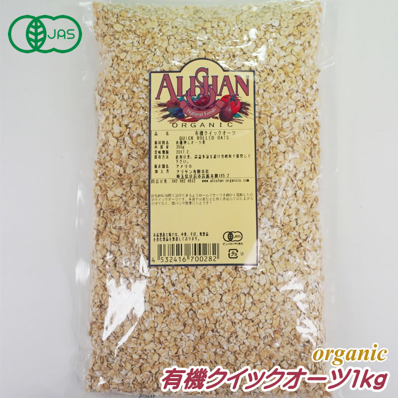 【賞味期限訳あり】有機 オートミール クイックオーツ シリアル 1kg アリサン オーガニック 無糖 ノンシュガー おやつ 朝食 ギフト 無添加 製菓 製パン 送料無料 アリサン・オーガニックセンター ALISHAN alishan 有機オートミール