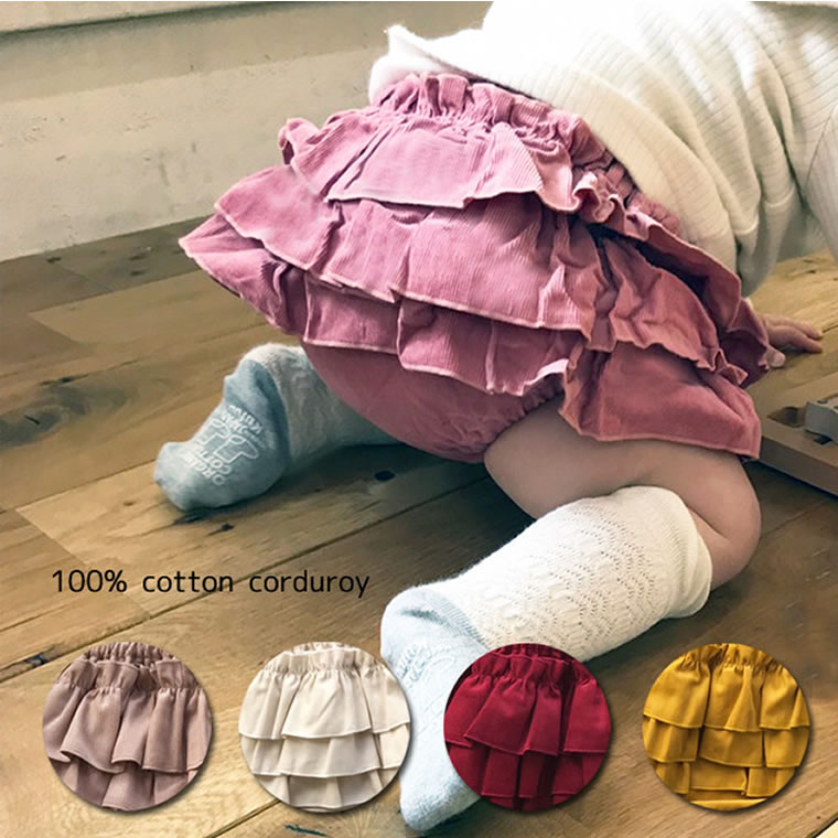 コーデュロイだから存在感抜群のブルマスカート♪安心の日本製です。カラーは選べる6種類!ニュアンスカラーのとてもおしゃれなブルマです。スカートとしては0-1歳頃まで対応ですが、着丈が短くなったらカバーパンツとしてお使い頂けます。ウエストゴム入れ替え口あり。