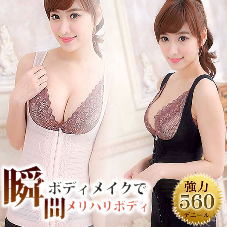補正下着 夏にも最適 通気性抜群♪【瞬間スリム】 560デニール ボディシェイパー ウエストニッパー機能一体型コルセット