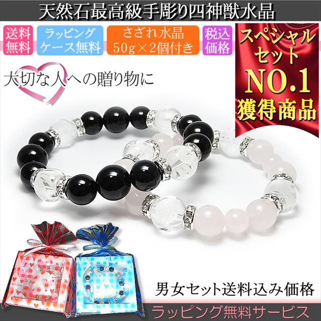 ペアブレスレット 2本セット 天然石 パワーストーン 人気 NO.1 四神獣水晶 2本セット クリスマスプレゼント 専用BOX サイズ変更無料 ラッピング無料 送料無料