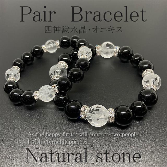 最高品質 ペアブレスレット オニキス 四神獣 2本セット パワーストーン 数珠 風水 四神獣水晶 専用BOX 付き サイズ変更無料 ラッピング無料 送料無料