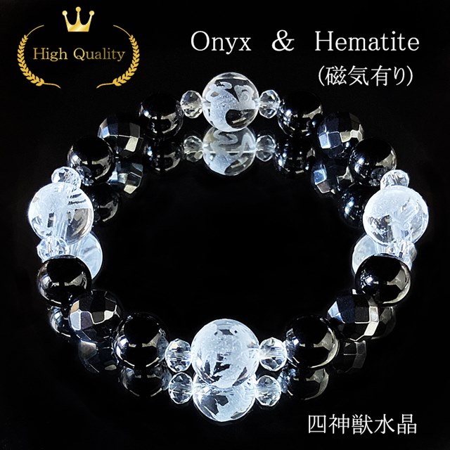 ブレスレット メンズ パワーストーン 四神獣水晶 オニキス ヘマタイト 磁気ブレスレット さざれ水晶付き 人気 送料無料 天然石 サイズ変更無料 誕生日プレゼント