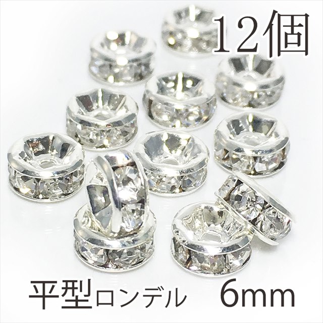 ロンデル 平型 シルバー 6mm 12個 A級 送料無料 ラインストーン メタルパーツ デコパーツ スペーサー ビーズ アクセサリーパーツ ブレス 修理 補修