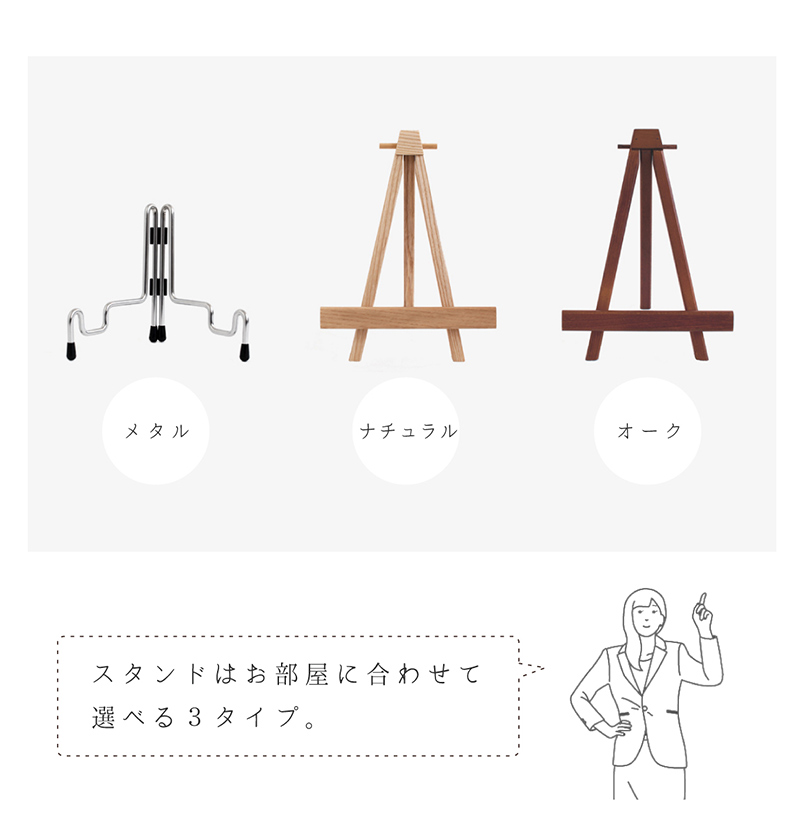 メタルスタンドまたは木製イーゼル ※お申込書にてお選びいただけます。