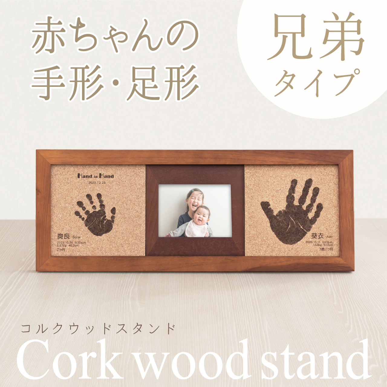 【コルクウッドフレームきょうだいタイプ】出産内祝い 内祝い 実家 両親 ギフト 名入れ 写真立て 誕生記念 メモリアル 赤ちゃん 100日祝い