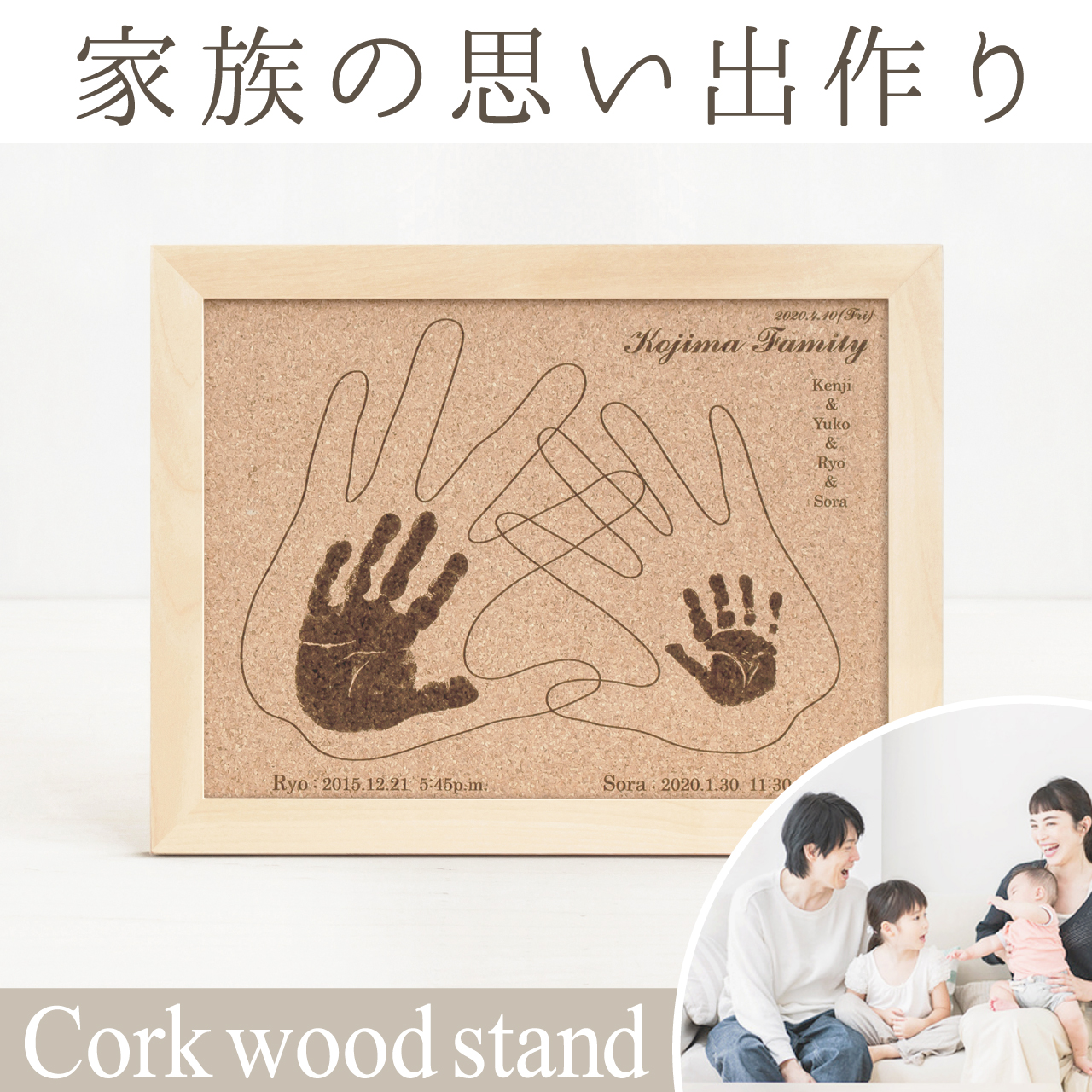 【ファミリーコルクウッドスタンド】出産内祝い 内祝い 実家 両親 ギフト 名入れ 写真立て 誕生記念 メモリアル 赤ちゃん 100日祝い