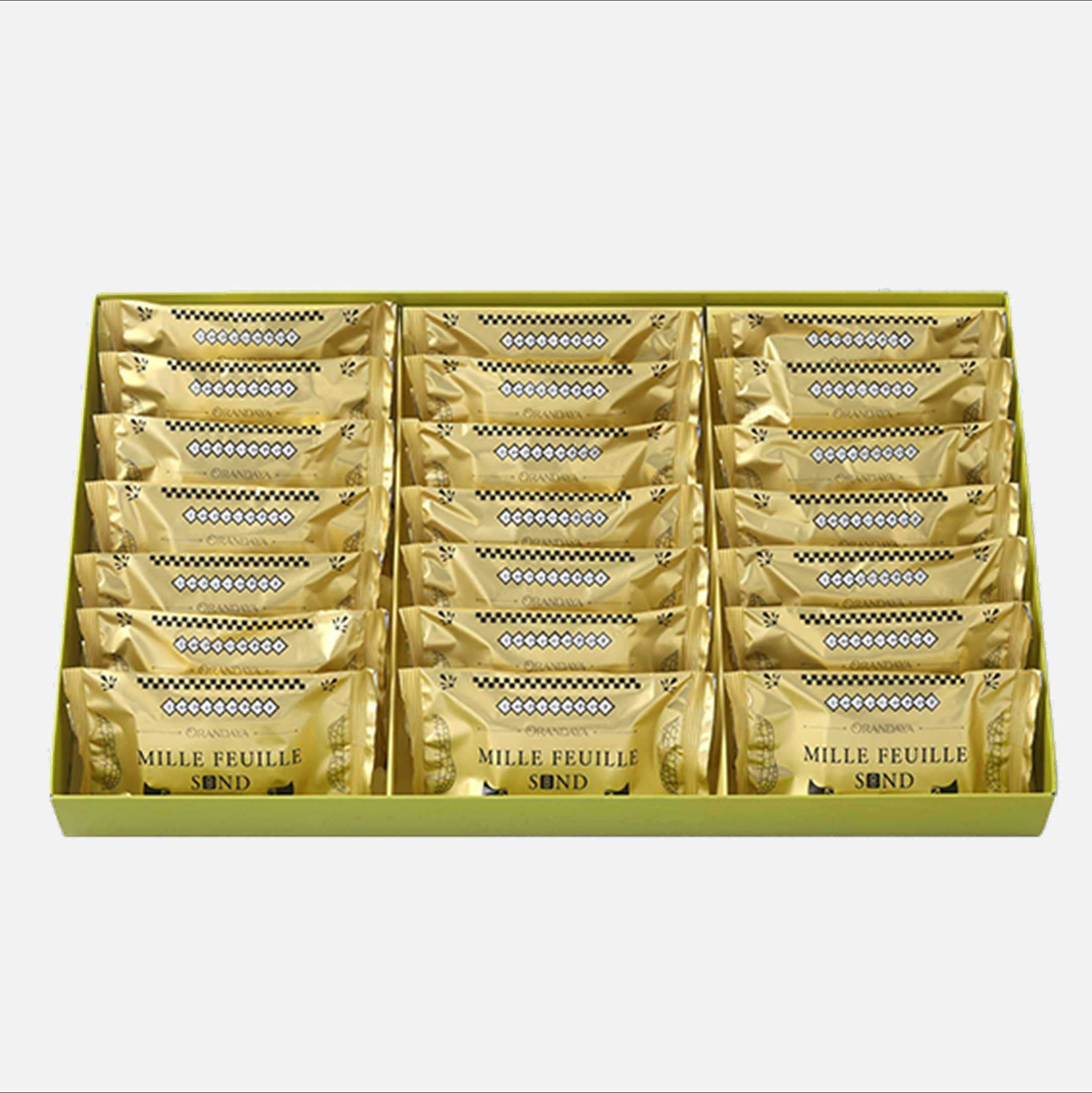 | 【原材料】 パイ生地(オランダ製造(小麦粉、バター、食塩))、 砂糖、落花生ペースト(落花生(千葉県産))、小麦粉、ホワイトチョコレート、 生クリーム、バター、グルコースシロップ、食塩/乳化剤、香料、 (一部に乳成分・小麦・落花生を含む) |