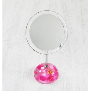 アクリル製スタンドミラー/卓上鏡 〔丸型 ピンクオーキッド〕 造花