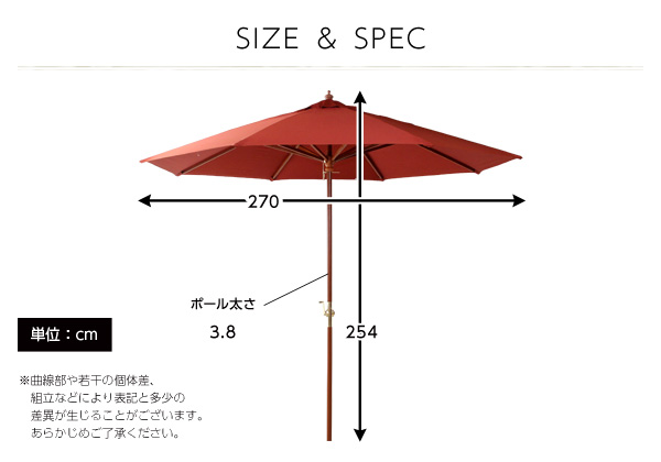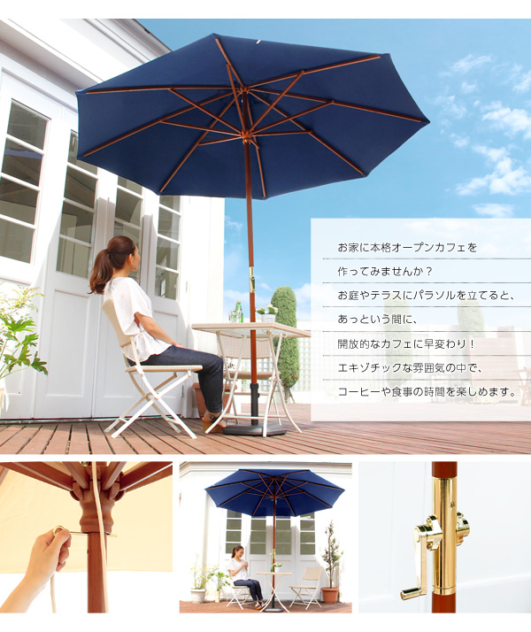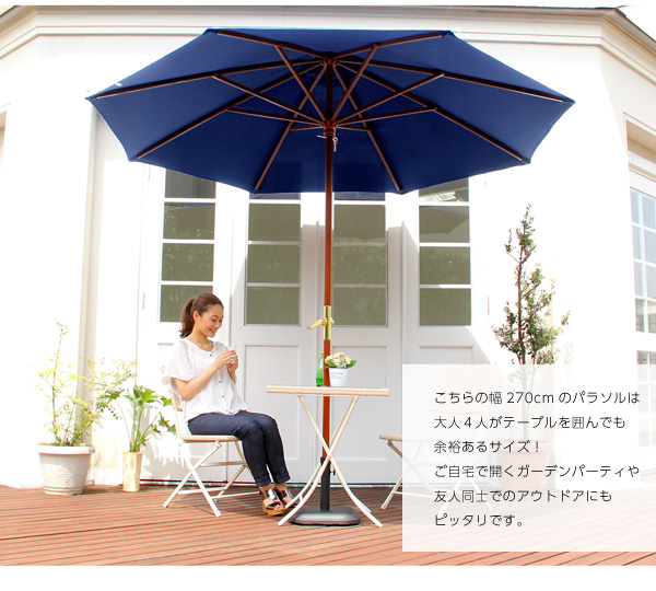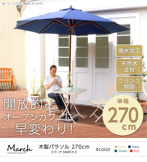 天然木 木製パラソル 270cm【マーチ-MARCH-】(パラソル 撥水 天然木)