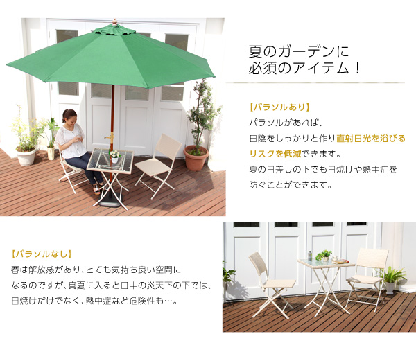 【商品名】 木製 パラソル/日よけ 【グリーン】 幅270cm 撥水加工 簡単設置 工具不要 〔ガーデン テラス 庭〕 【ジャンル・特徴】 マーチ MARCH 天然木製 モダン 北欧風 パラソル 日よけ 日除け 傘 かさ カサ ガーデン テラス 庭 ベランダ ウッドデッキ オープンカフェ バーベキュー アウトドア BBQ キャンプ 休日 家族 ファミリー ガーデニング 園芸 家庭菜園 ぱらそる ひよけ プレゼント 贈り物 お祝い [ SH-05-60154 ]